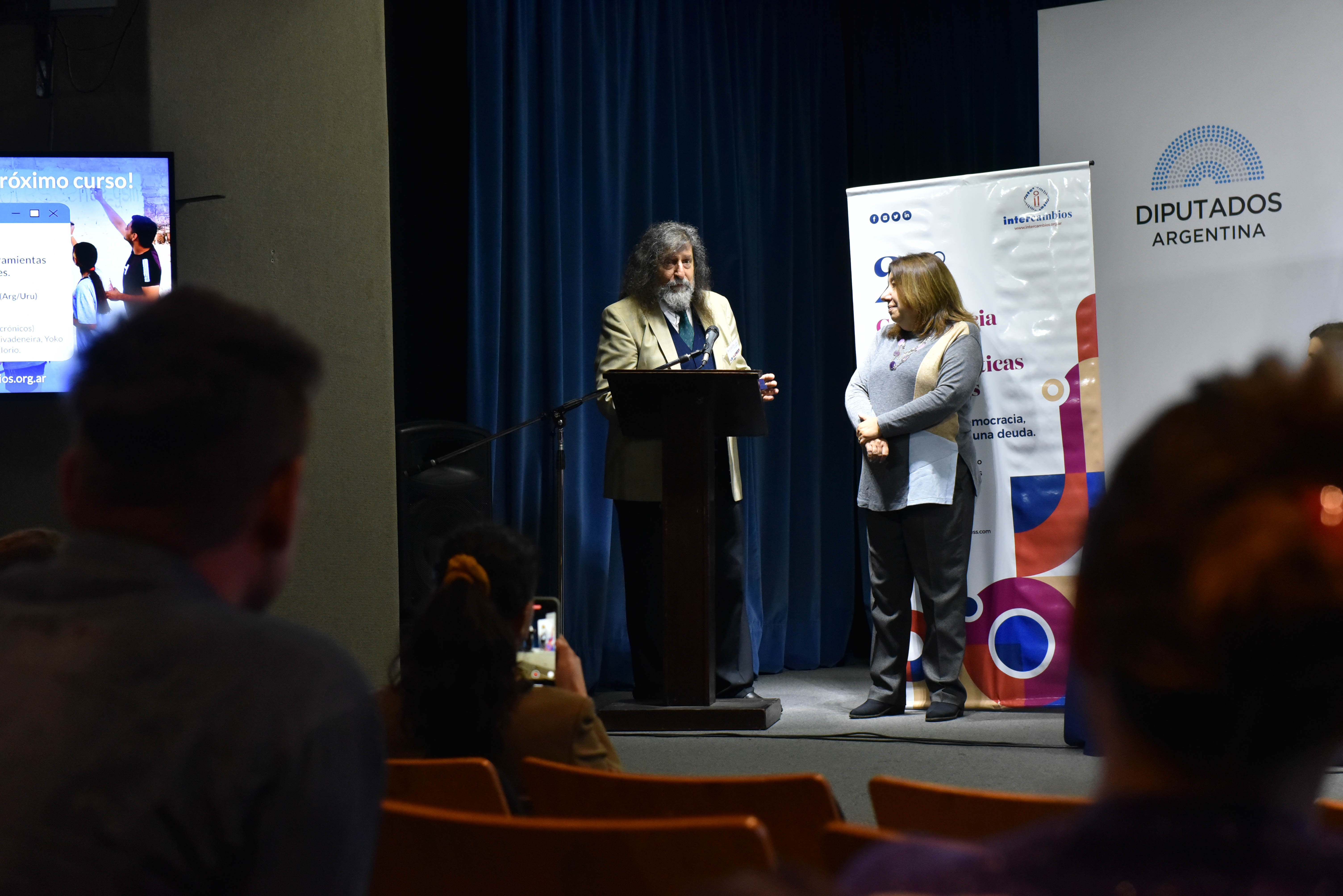 Desde Intercambios agradecemos a todas las personas e instituciones que hicieron posible este espacio de encuentro, diálogo y reflexión colectiva. Gracias a FONCyT - Agencia I+D+i por el apoyo; a lxs trabajadorxs de la Honorable Cámara de Diputados de la Nación por la calidez para recibirnos en su recinto; al público por su interés genuino para potenciar el debate y las reflexiones; a lxs panelistas por sus interesantes puntos de vista y por brindarnos lucidez para pensar la complejidad que demanda esta cuestión; y a todo el equipo de Intercambios por su compromiso incondicional.